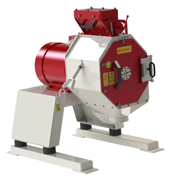 Дробилки так же могут комплектоваться дополнительными опциями такими как: опора высотой от 250 до 940 мм, приемный лоток для подачи зерна с возможностью загрузки от 50 до 1000 кг, вентилятор с фильтром для сбора пыли, входные и выходные патрубки Ø150-200 мм для подачи зерна и выгрузки готового продукта из дробилки.