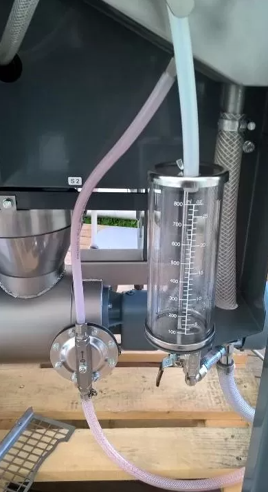 Если подача семян слишком мала для пропорций протравливания — машина остановится. Перезапуск работы машины начнется, когда загрузочная воронка снова будет наполнена. Второй датчик расположен под смесителем на случай остановки протравителя, когда наполнение идет слишком медленно для настроенного объема протравливания.