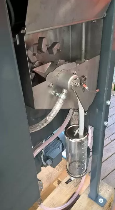 Препараты подаются из емкости имеющей мембранный насос, создающий давление для распыла, можно установить до четырех емкостей с различными видами препаратов. Насосами через трубки препараты подаются в камеру смешивания до распылителей. Семена, покрытые препаратами подаются в конвейер-смеситель для дополнительного перемешивания и транспортирования. Дозирующая система состоит из емкостей с препаратами мембранного дозирующего насоса и механизма калибровки. Дозирующий насос подает жидкость на распылитель или на мерную колбу для калибровки. Антивибрационное устройство состоит из Т-образных соединений с гофрированным рукавом. Дозирующее оборудование состоит из мерной колбы со шкалой и двух шаровых клапанов. Система контроля состоит из двух защитных сенсоров для семян. Один в загрузочном бункере обеспечивает контроль над тем, чтобы секции диска подачи всегда были наполнены семенами.