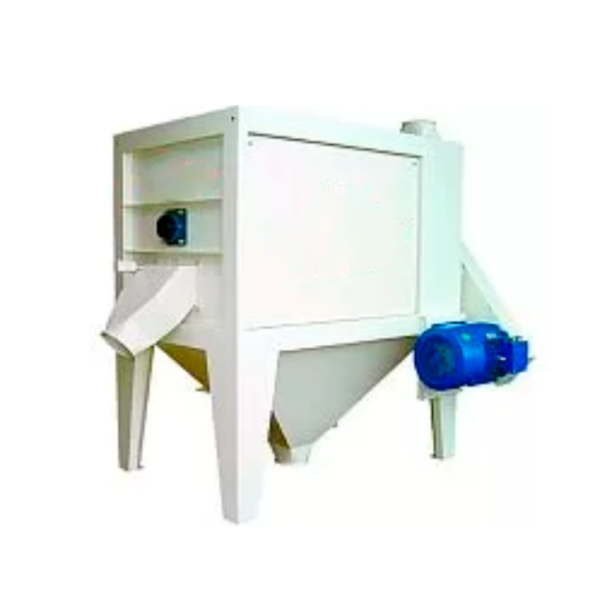 Материал, перемещаясь щетками вдоль оси корзины-барабана, подвергается обработке и сходом выводится из машины, а оставшиеся отходы (шелуха и тд.) просыпаются сквозь ячейки в сетке.