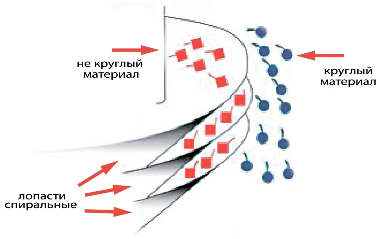 Винтовой сепаратор способен выделить сорную примесь из основного продукта, если хотя-бы один из этих параметров незначительно отличается.