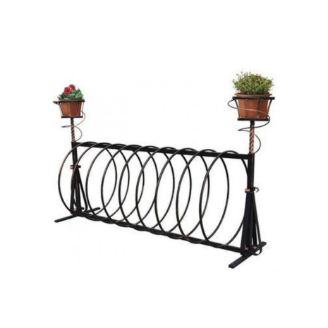 Боковые части парковки оборудованы подставками для декоративных элементов, таких как цветочные горшки, скульптуры или другие украшения, что позволяет гармонично сочетать функциональность и эстетику в одном изделии.