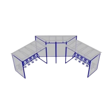 - Параметры конструкции для 12 мест — высота: 240 см, длина каждой стороны: 700 см, глубина: 170 см.