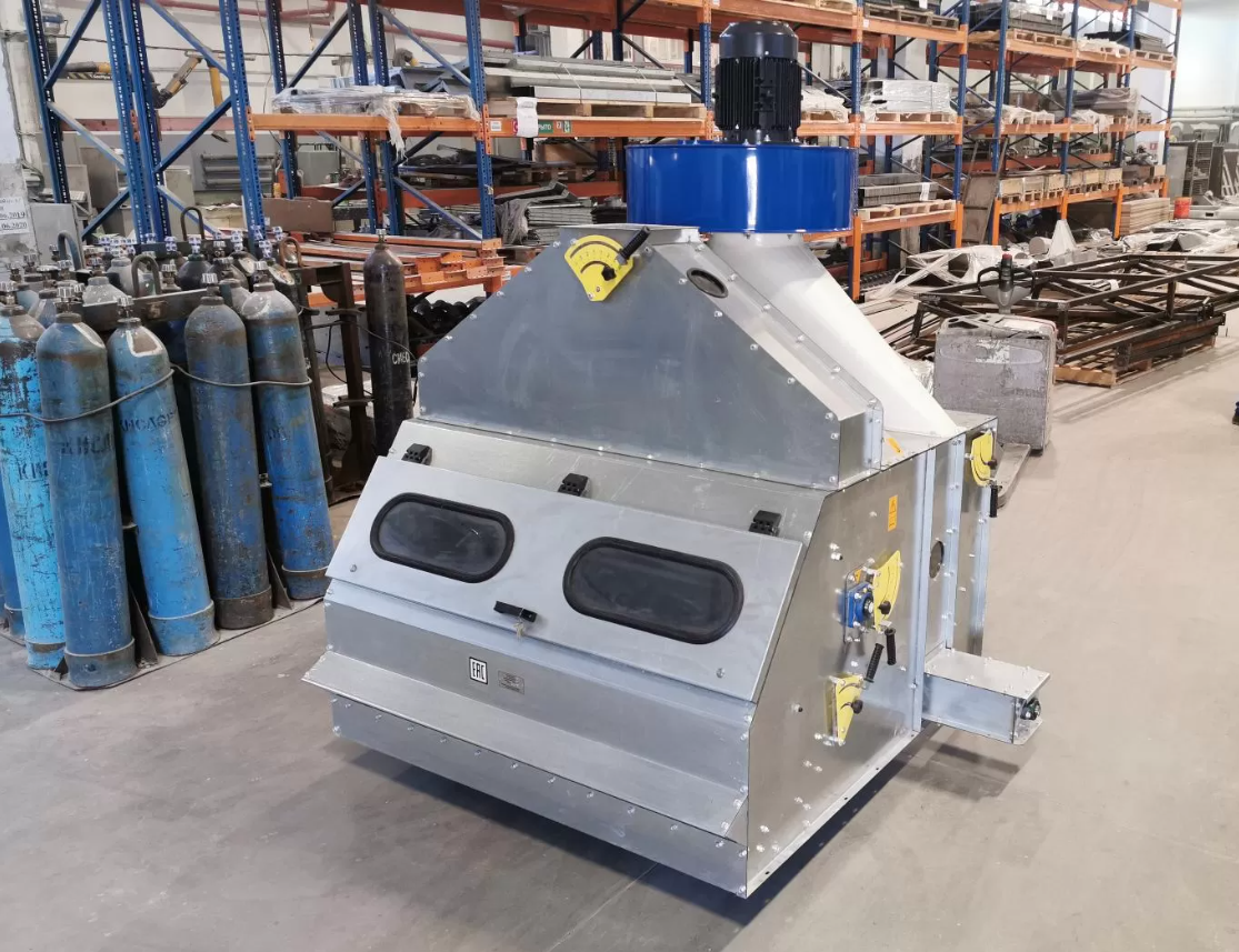 Сепаратор предназначен для первичной очистки зерновых культур от мелких примесей, песка, пыли, соломы и других легких инородных тел.